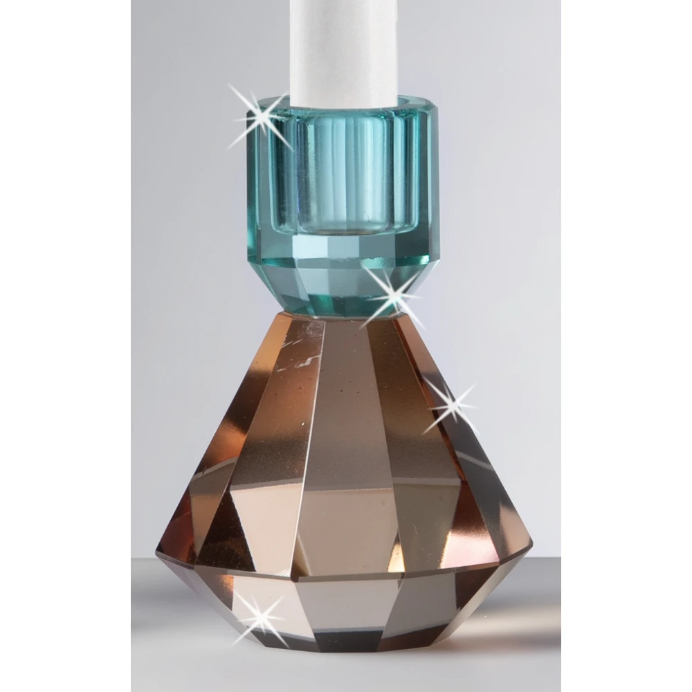 Portacandele in Cristallo bicolor Ranoldi: Bomboniera Matrimonio cm.8x8x11 Tabacco-Verde