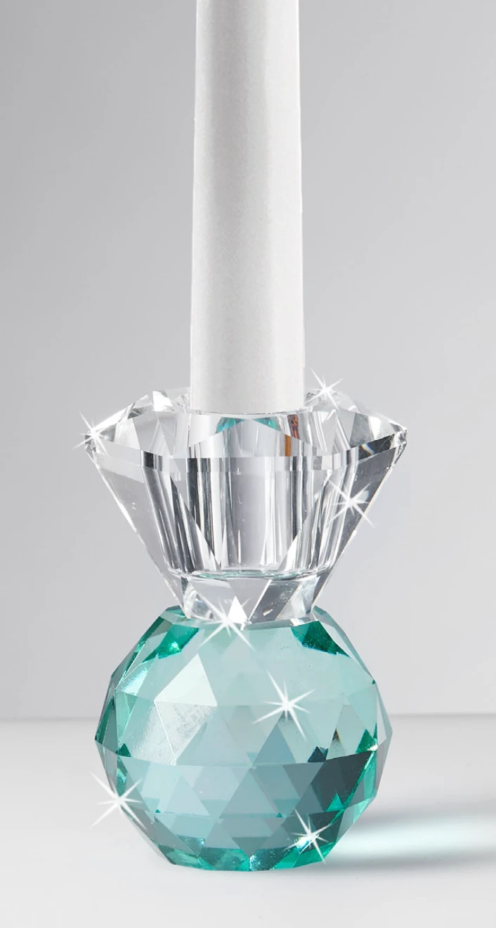 Portacandele in Cristallo Bicolor Ranoldi: Bomboniera Matrimonio Made in Italy cm.6x6x9 Acqua Marina