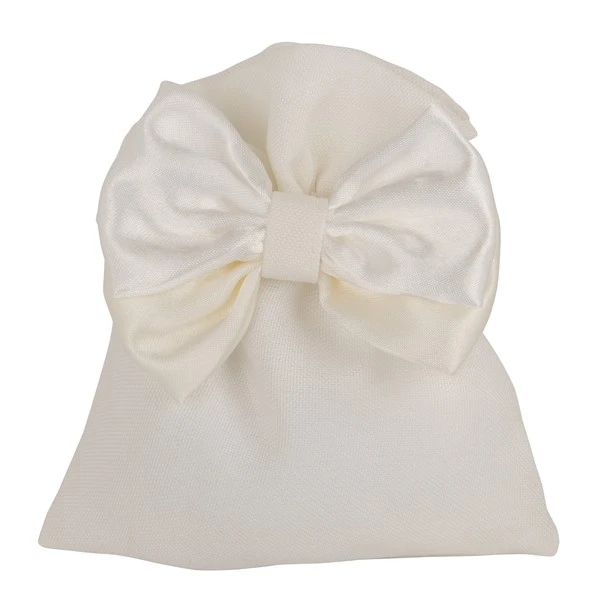SACCHETTO CONFETTI DUE FIOCCHI BIANCO/CREMA CM.10X12