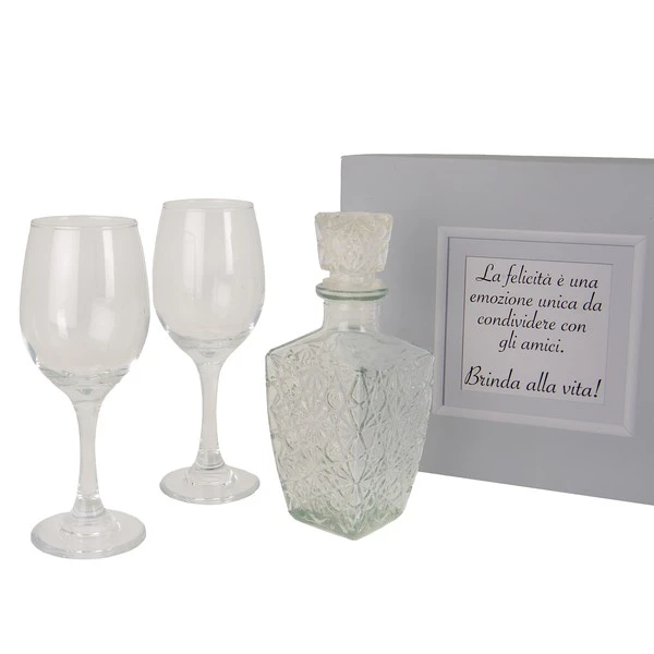 BOMBONIERA - SET 3 PEZZI CALICI E BOTTIGLIA 400 ML CON BOX