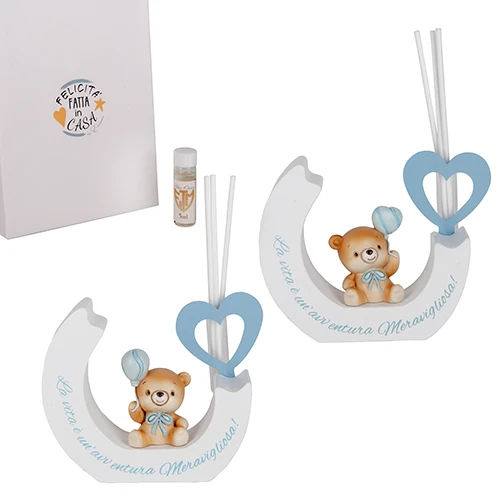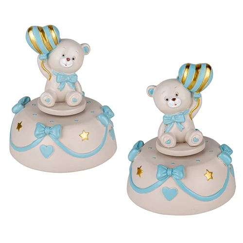 BOMBONIERA PER BATTESIMO ORSO CARILLON CELESTE DM.10 H.12