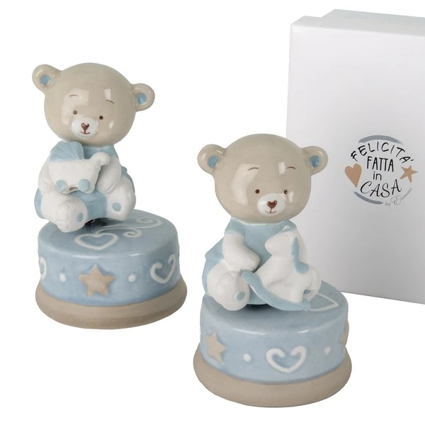 ORSETTO CON CAMPANELLA IN CERAMICA E LUCE LED CM.9 CELESTE