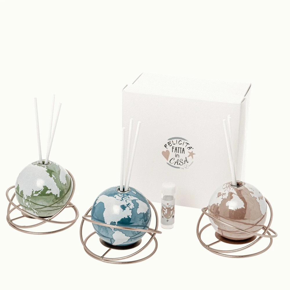 MAPPAMONDO IN LEGNO CON BASE ARGENTO 8,5 CM