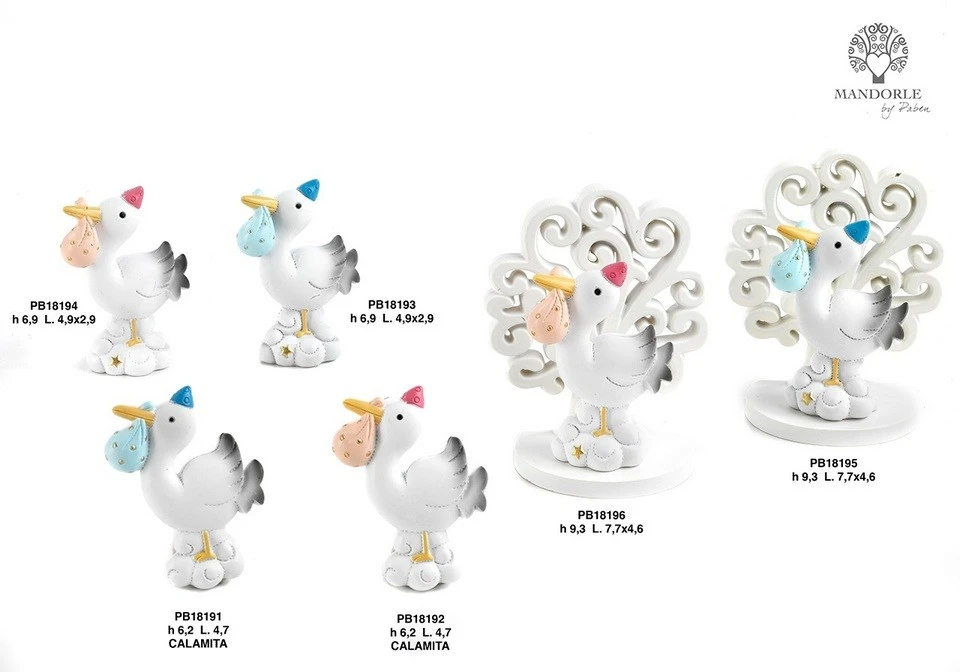 SACCHETTO CONFETTI CICOGNA ROSA 13 CM.