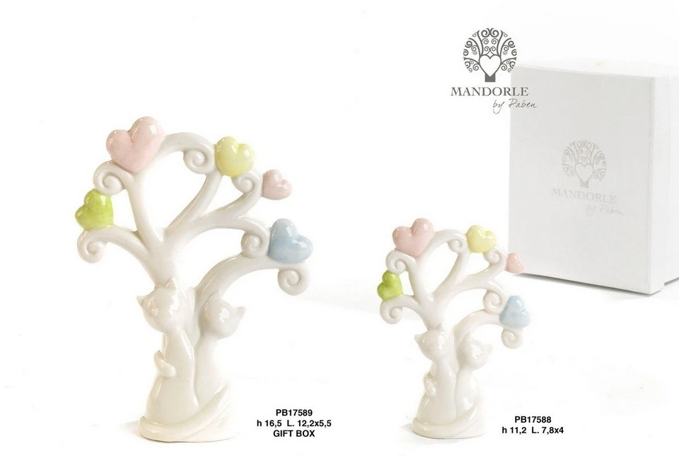 ALBERO/CUORI-GATTI INNAMORATI 16.5 CM. PORCELLANA
