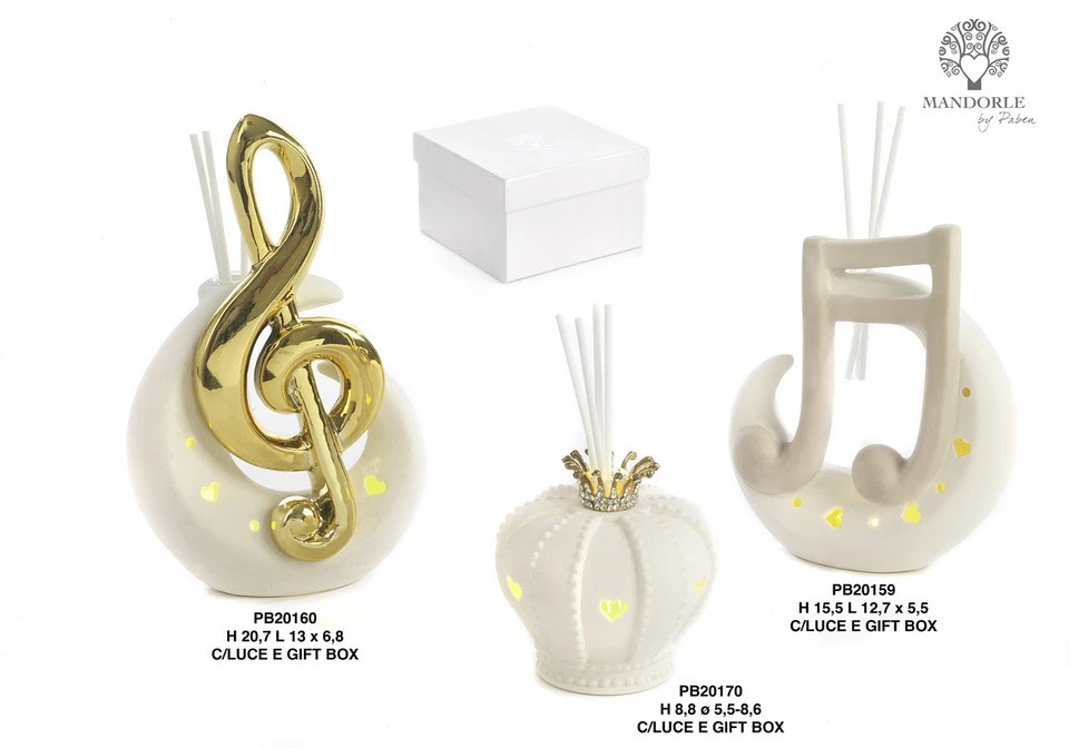 DIFFUSORE MEZZALUNA E NOTA MUSICALE 15.5 CM. PORCELLANA C/LUCE