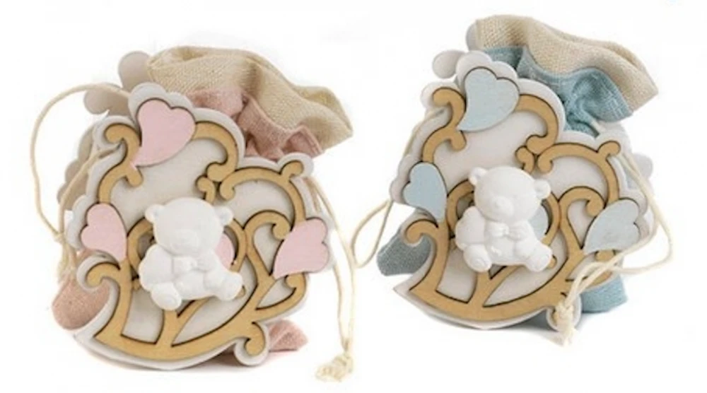 SACCHETTINO CONFETTI ORSO-CUORI CELESTE CM.8