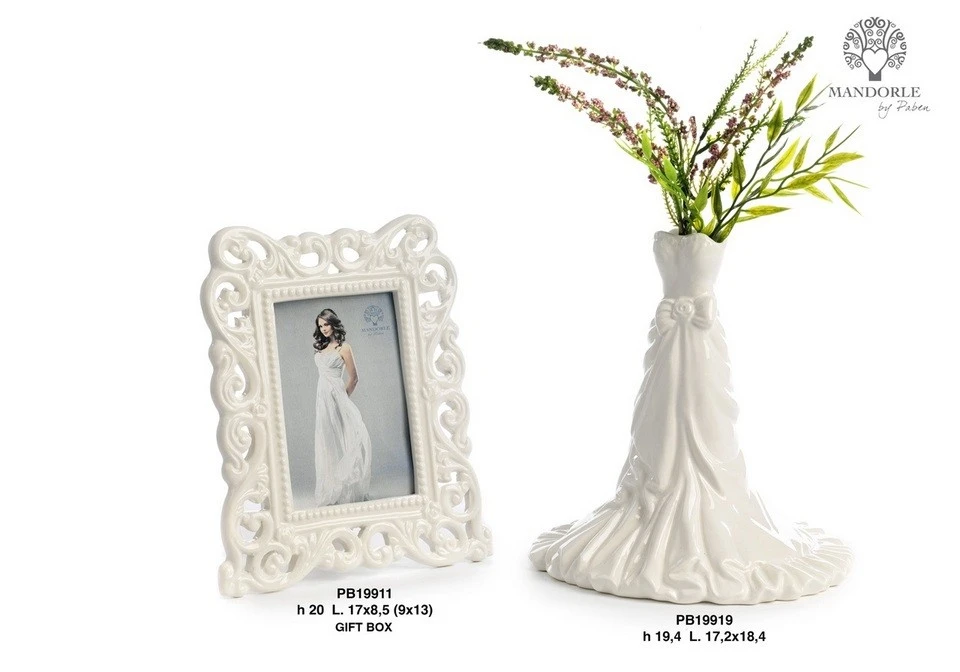VASETTO VESTITO DA SPOSA CON FIOCCO 19.4 CM. CERAMICA