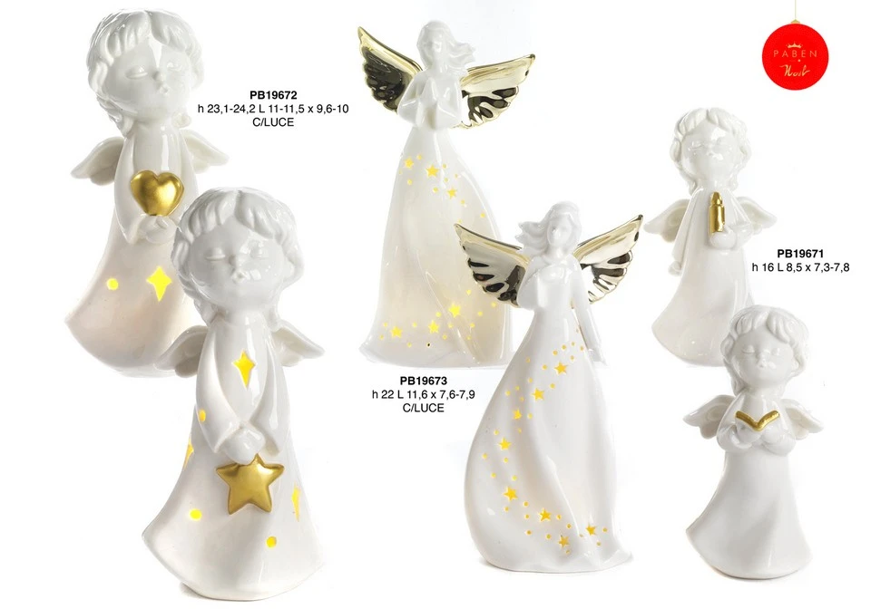 ANGELO CON LIBRO - CANDELA ORO 16 CM. PORCELLANA