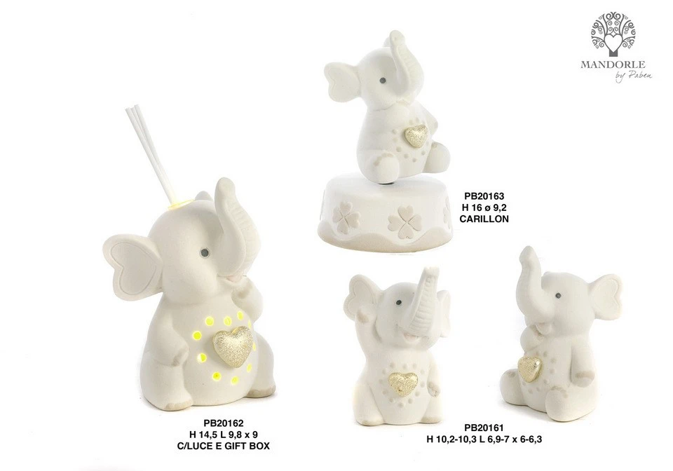 ELEFANTE CON CUORE ORO METAL. 16 CM. PORCELLANA CARILLON
