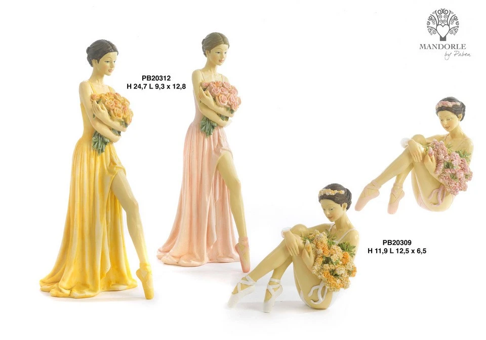 BALLERINA SEDUTA CON FIORI 11.9 CM. RESINA
