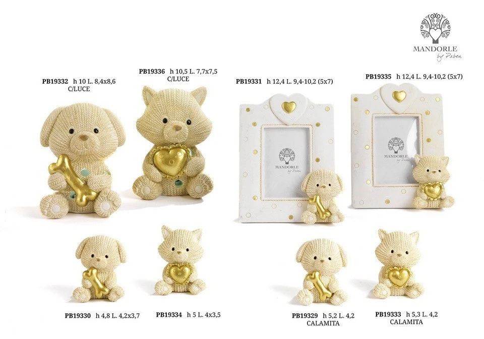 PORTAFOTO GATTINO LANA/CUORE ORO 12.4 CM. RESINA