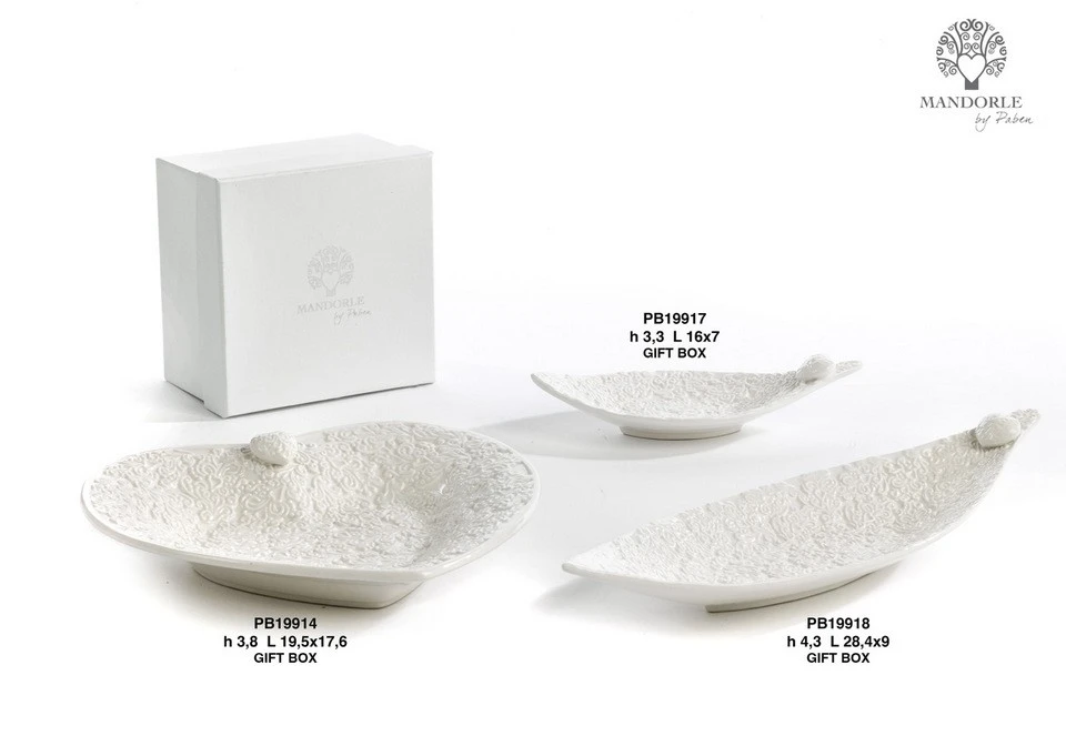 VASSOIO FOGLIA A MERLETTO CON CUORE 28.4 CM. CERAMICA