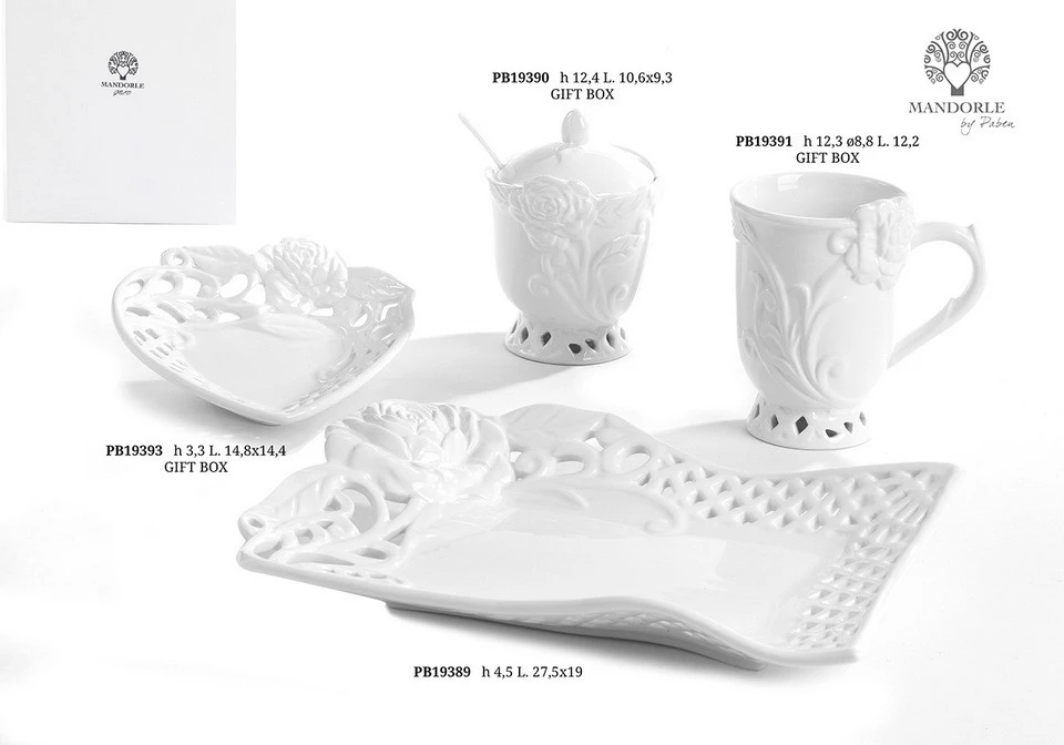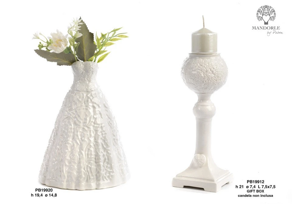 CANDELIERE A MERLETTO CON CUORE 21 CM. CERAMICA