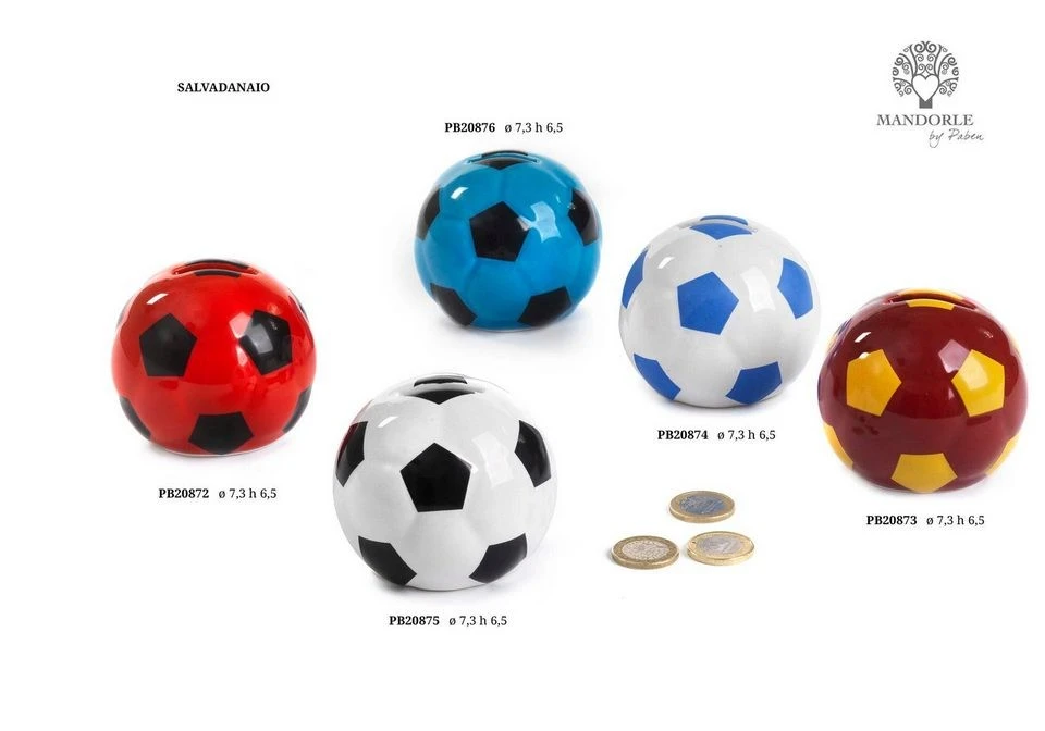 SALVADANAIO PALLONE DA CALCIO BIANCO-NERO 7.3 CM. CERAMICA