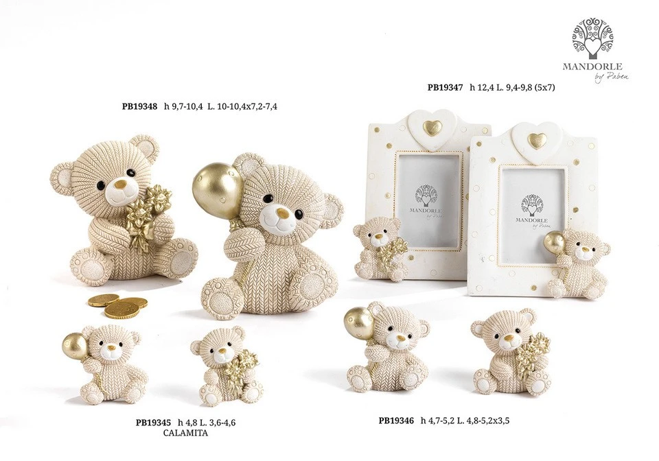 ORSETTO CON PALLA ORO 4.8 CM. 2 ASSORTITI RESINA CALAMITA