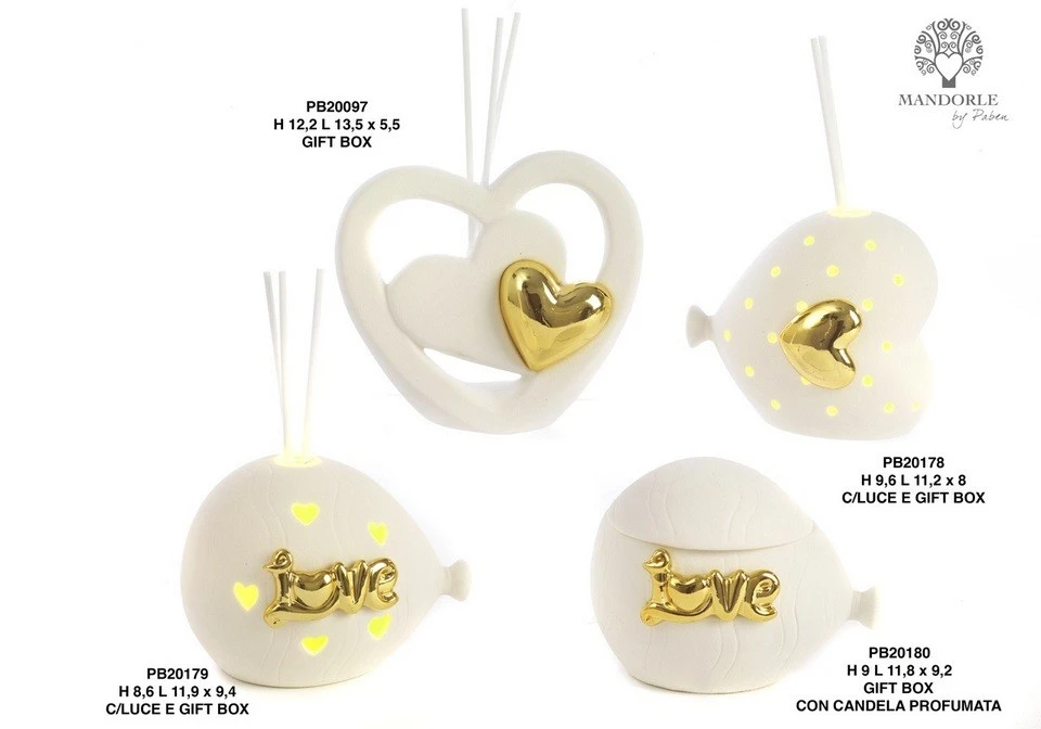 DIFFUSORE PALLONCINO 'LOVE' 8.6 CM. PORCELLANA CON LUCE