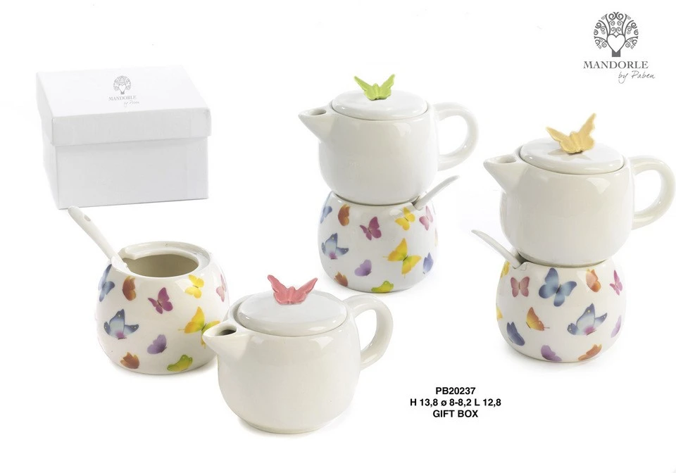 SET CAFFETTIERA - ZUCCHERIERA FARFALLE 13.8 CM. PORCELLANA