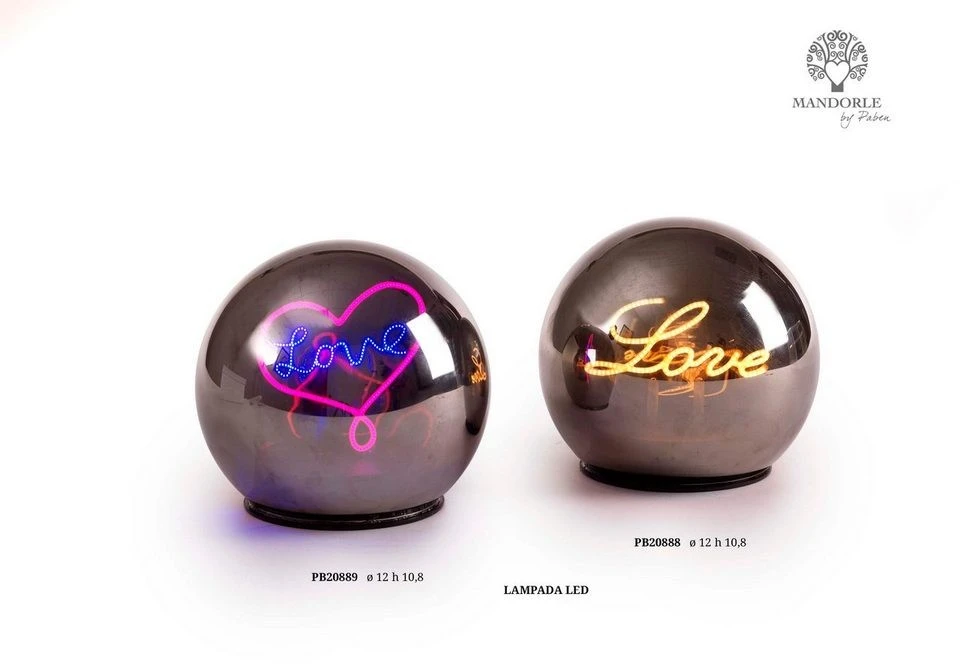 SFERA LAMPADA LED CON SCRITTA 'LOVE' 12 CM. VETRO ARGENTATO