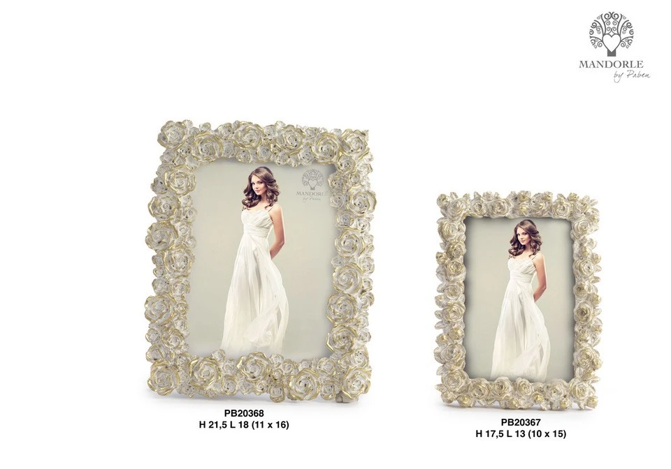 PORTAFOTO CON ROSE FINITURA ANTICA 17.5 CM. RESINA ORO