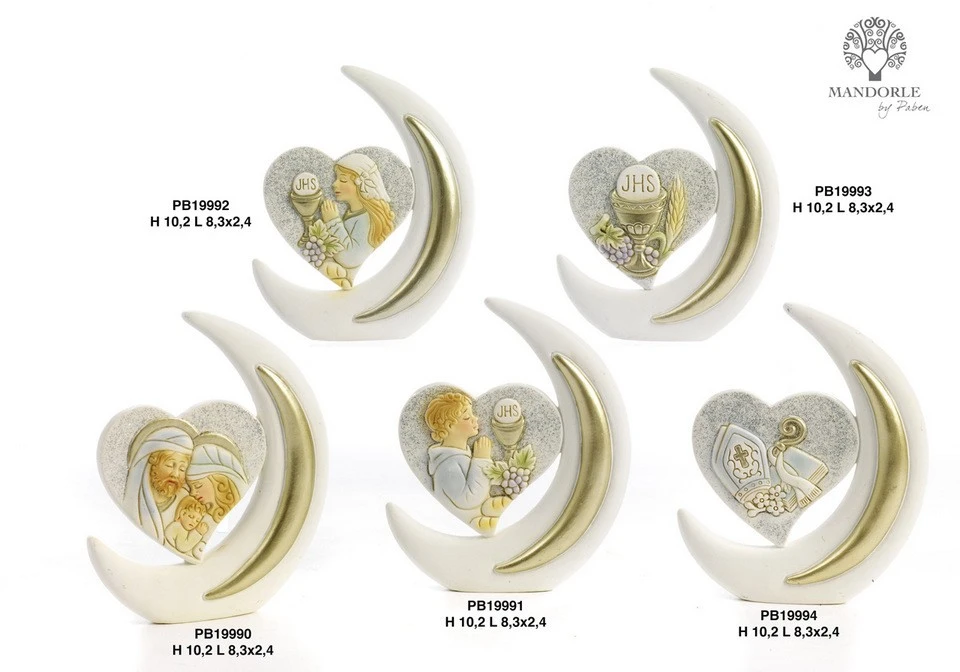 MEZZALUNA E CUORE BIMBA COMUNIONE 10.2 CM. RESINA