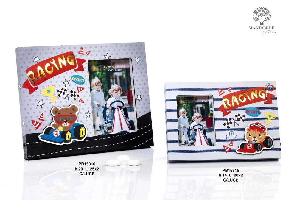 PORTAFOTO ORSETTO RACING 25 CM. LEGNO-LUCI