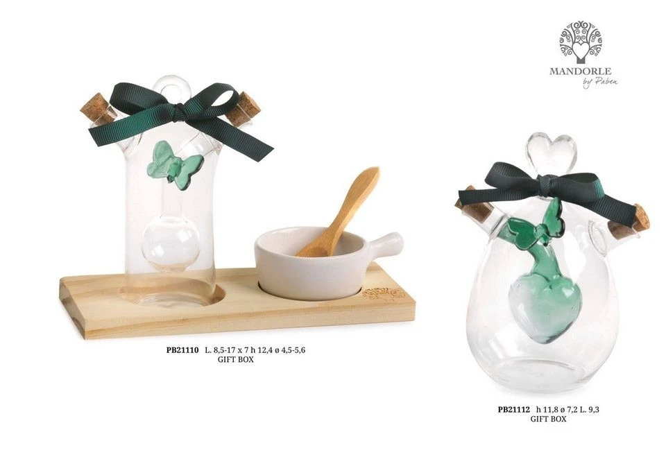 SET OLIO - ACETO - SALE 17 CM. VETRO LEGNO CERAMICA G.BOX