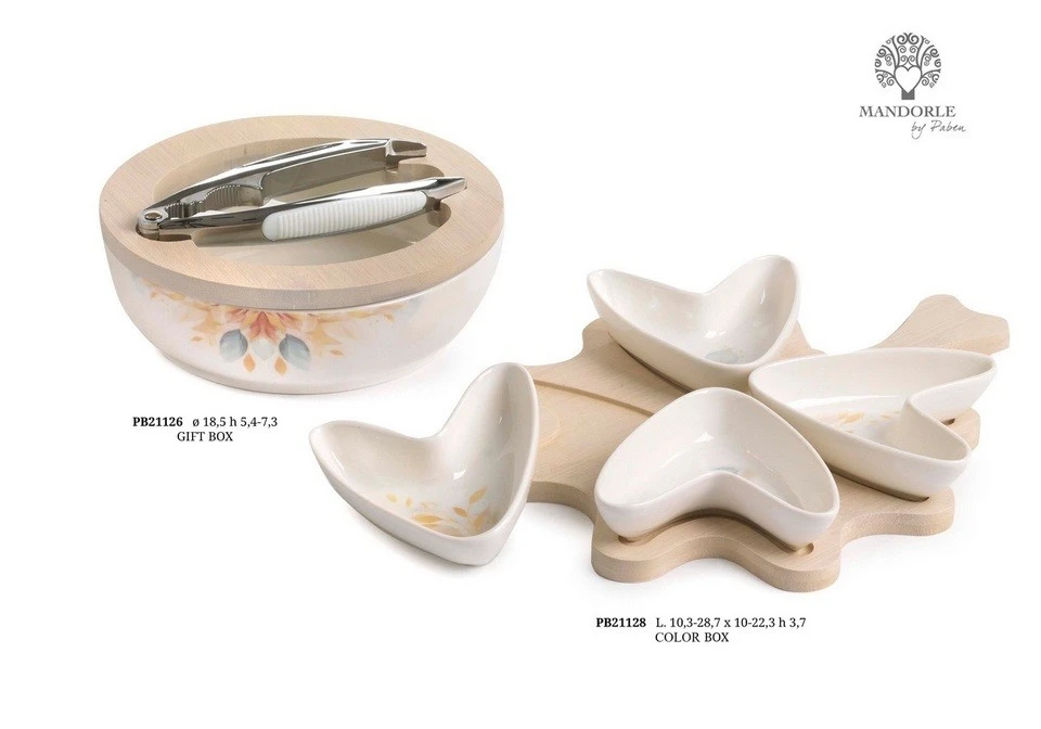 SET ANTIPASTIERA 4 CIOTOLE C/VASSOIO 28.7 CM. PORCELLANA C.BOX