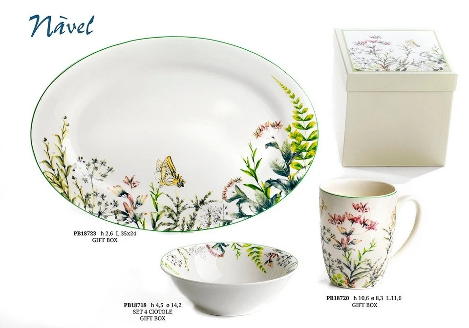 VASSOIO OVALE DECORO PIANTE 35 CM. PORCELLANA