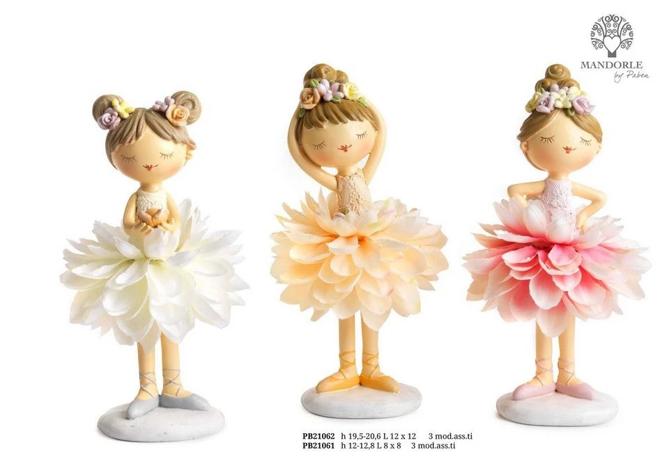 BALLERINA CON VESTITO FIORE 20.6 CM. RESINA STOFFA
