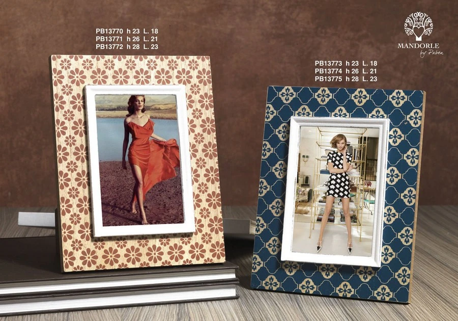 PORTAFOTO/FIORI BLU 23 CM.LEGNO
