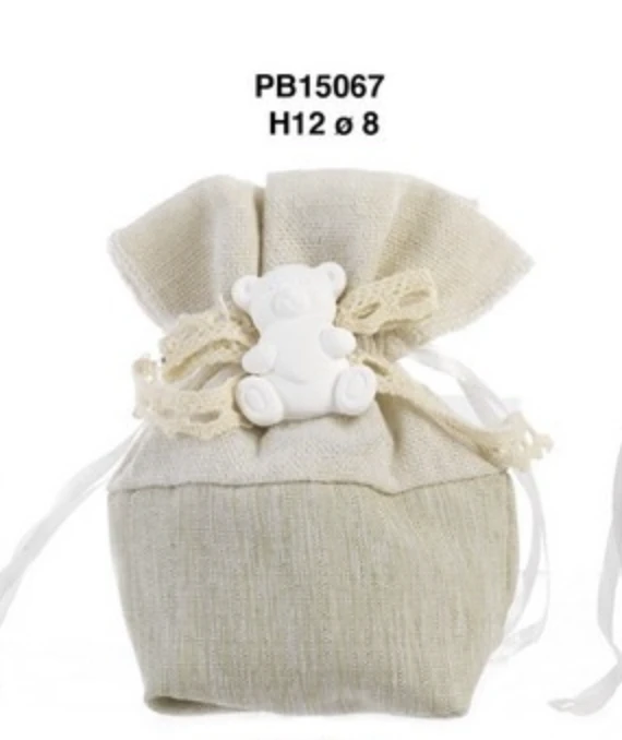 SACCHETINO CONFETTI 12 CM. STOFFA/ORSO CON GESSETTO