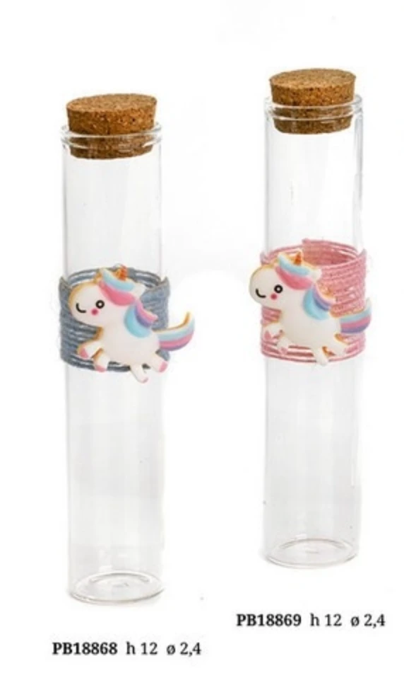 TUBETTO IN VETRO CONFETTI UNICORNO 12 CM. ROSA