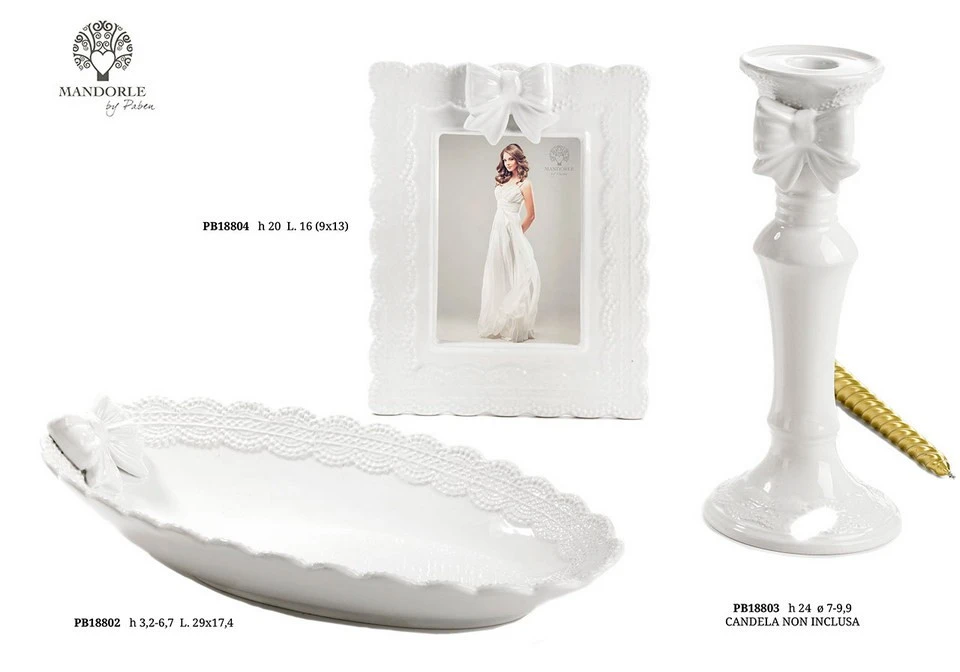 CANDELIERE/MERLETTO FIOCCO 24 CM. CERAMICA