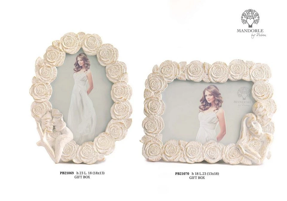 PORTAFOTO RETTANGOLARE CON ROSE 23 CM. RESINA
