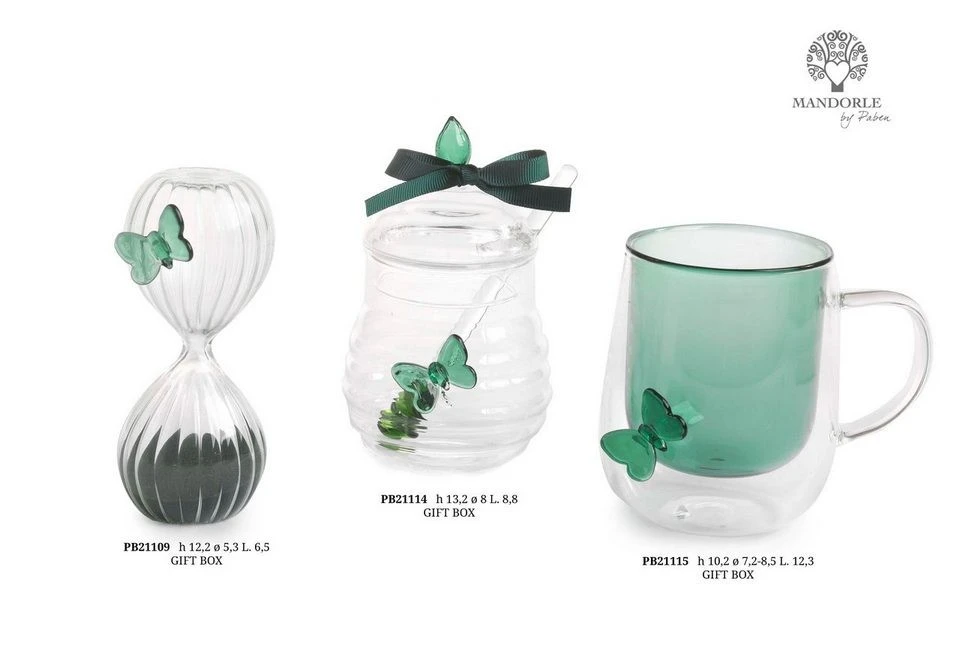 CLESSIDRA A CUORE CON FARFALLA BIANCA 10.3 CM. VETRO G.BOX