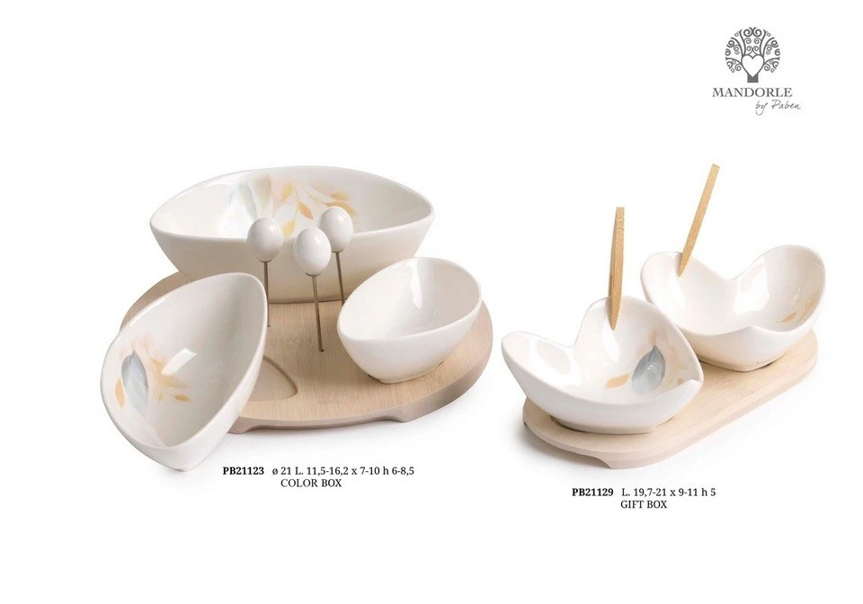 SET 3 CIOTOLINE SU VASSOIO 21 CM. PORCELLANA C.BOX