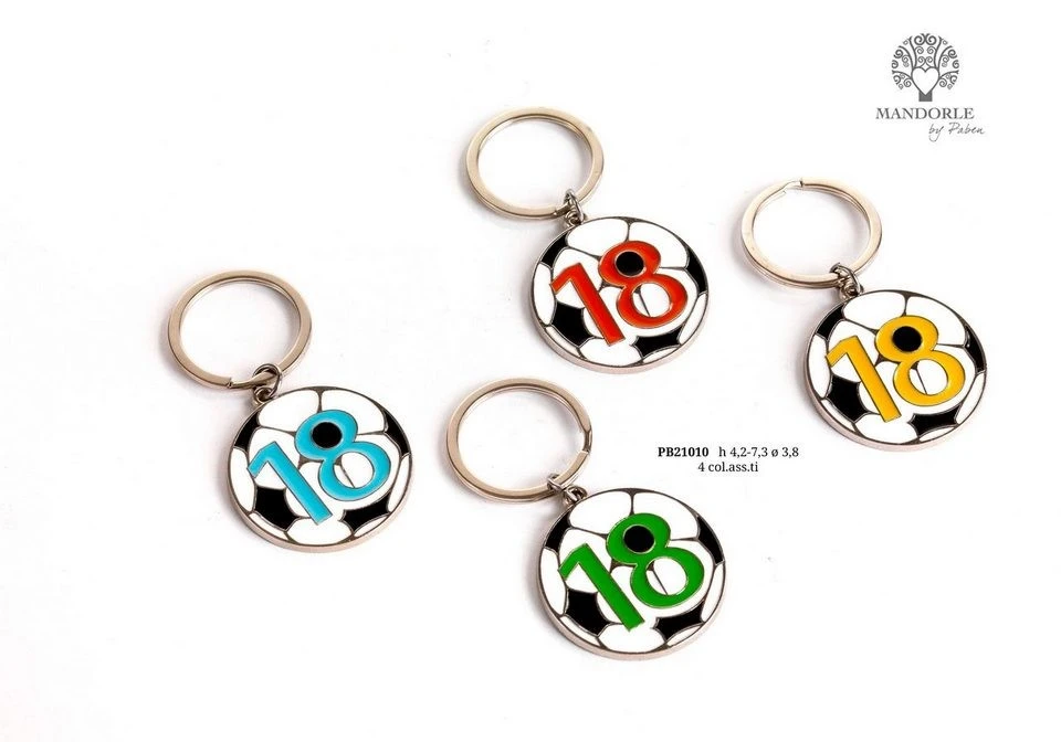PORTACHIAVI PALLONE DA CALCIO NR. 18 4.2 CM. METALLO BOMBONIERA PER COMPLEANNO D.