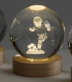 Bomboniera Comunione Calcio: Sfera LED in Cristallo 3D con Calciatore e pallone .