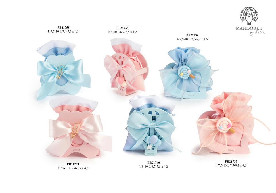 Sacchettino confetti per nascita con lella lecca cm.7,5 celeste