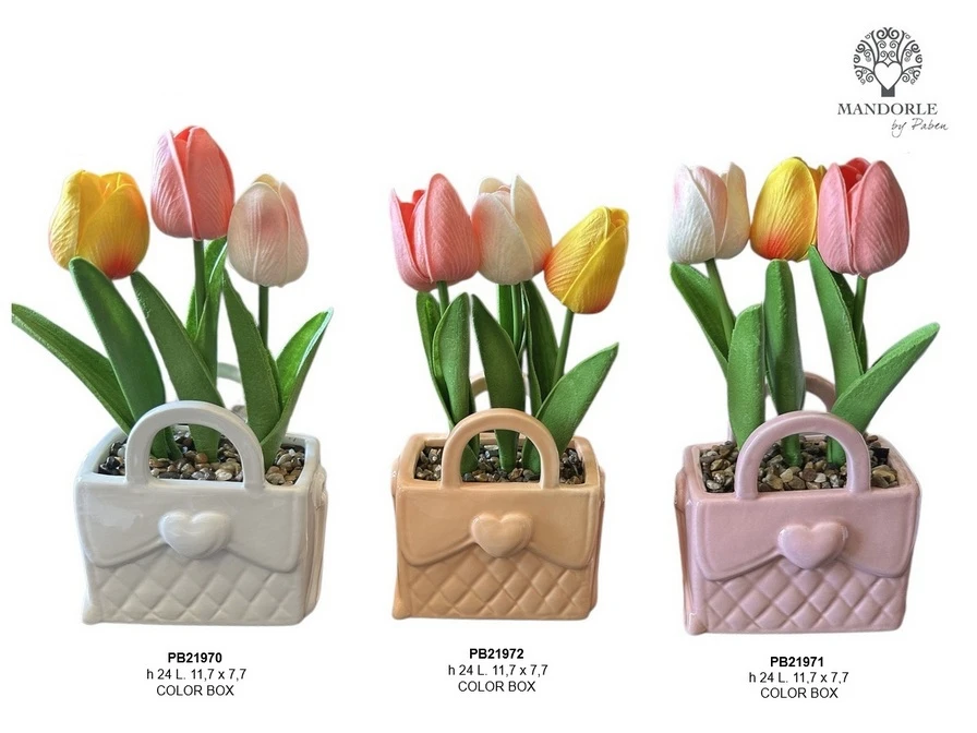 VASO TULIPANI BORSETTA PESCA 24 CM. CERAMICA C.BOX
