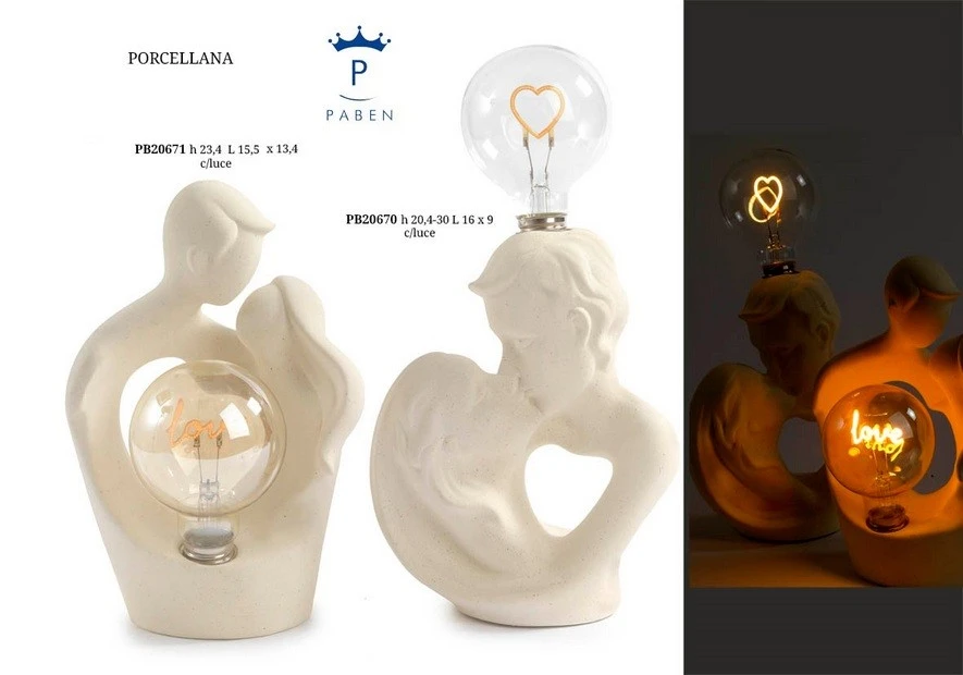 COPPIA INNAMORATI CON LAMPADA LOVE 23.4 CM. PORCELLANA