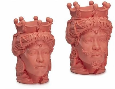 COPPIA TESTE DI MORO TERRACOTTA CM 18 ROSSO