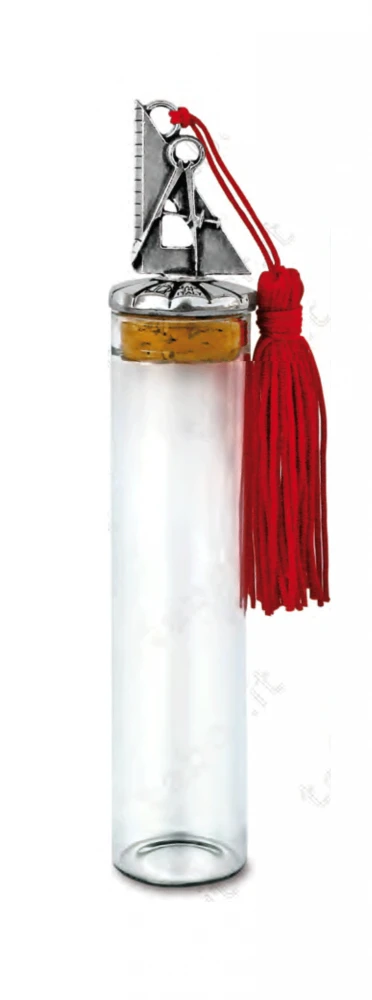 Fiala in vetro con squadra e compasso sul tappo - Bomboniera laurea in Architett.