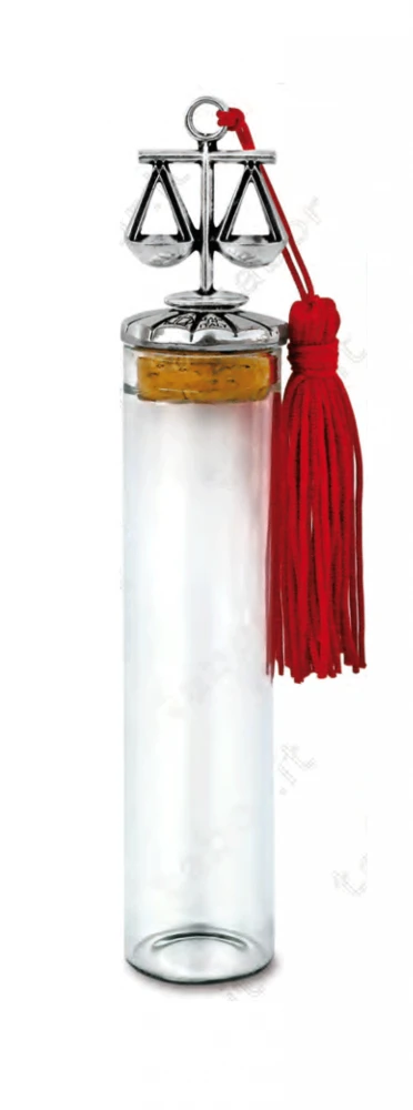Fiala in vetro con bilancia sul tappo - Bomboniera laurea in Giurisprudenza