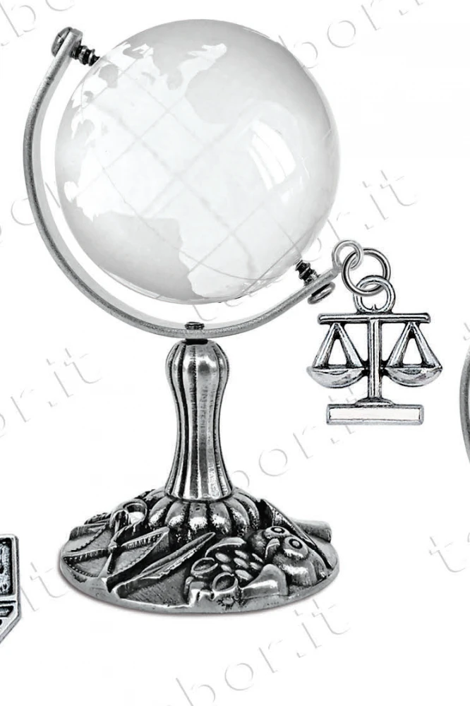 Globo terrestre in vetro e bilancia Laurea in Giurisprudenza