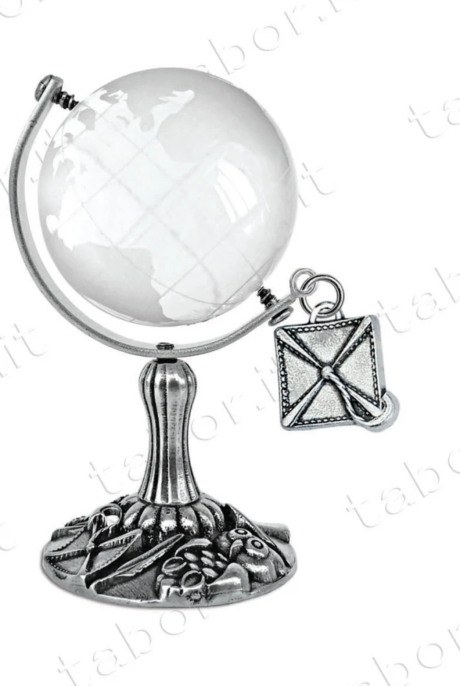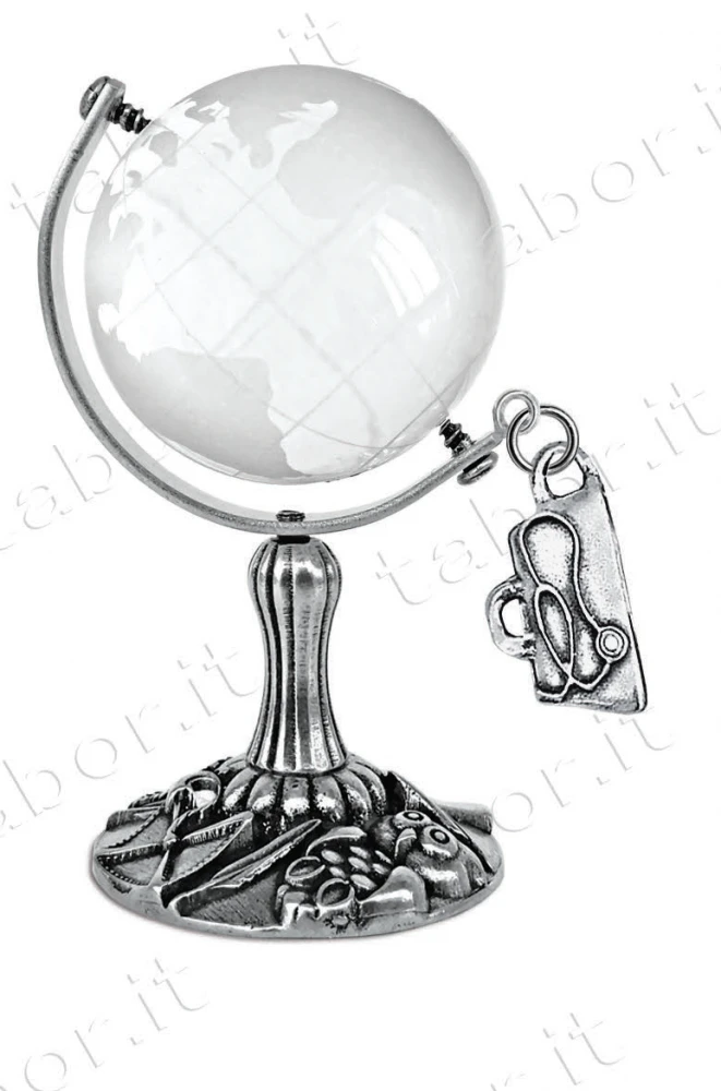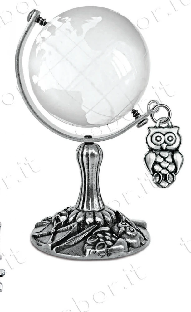 Globo terrestre laurea in vetro ciondolo alloro con scatola