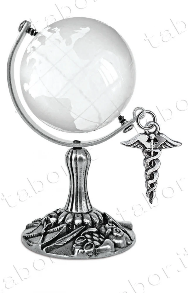 Globo terrestre in vetro e caduceo Lurea in Medicina e Farmacia
