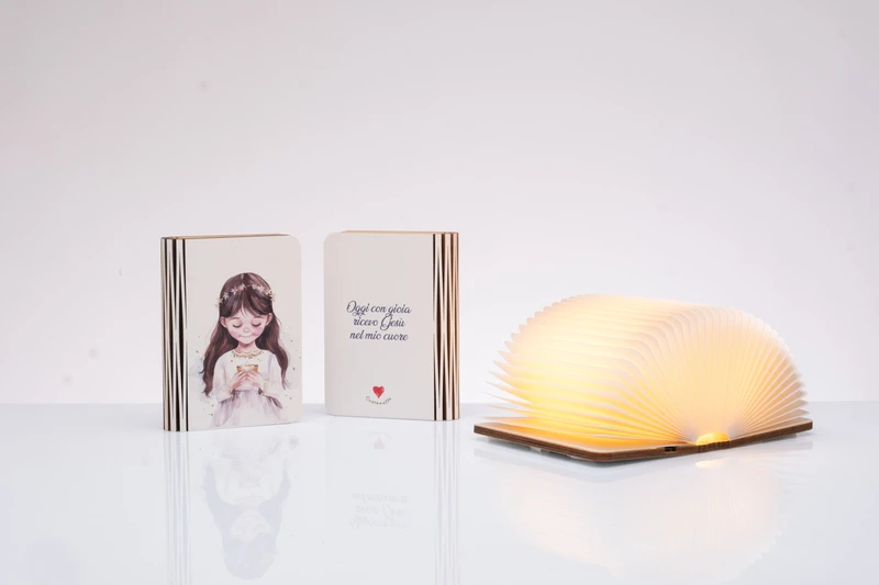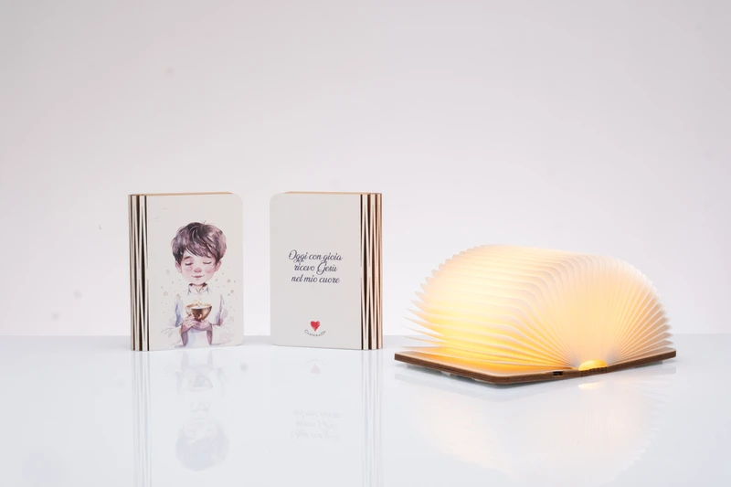 Bomboniera Solidale Comunione Bambino: Lampada LED Libro Aperto Cuorematto