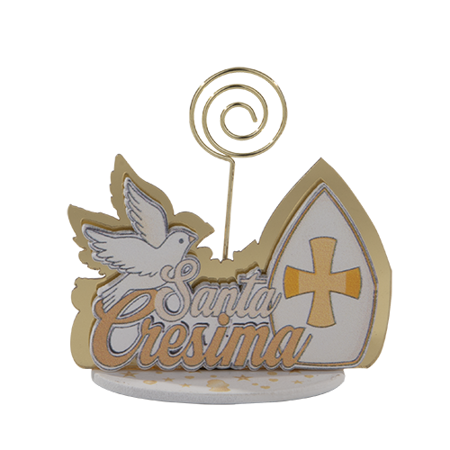 Il simbolo della cresima è la mitra e il pastorale del vescovo in quanto è proprio quest’ultimo che con l’unzione e il buffetto sulla guancia rende soldati di Cristo confermando le promesse fatte dai genitori durante il battesimo.